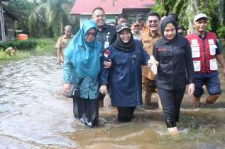 Prihatin dengan Warga Terdampak Banjir, Bupati Kasmarni Tinjau Lokasi Banjir Sembari Salurkan Bantuan
