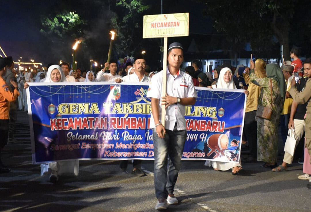 PEKANBARU, REPORTASEAKTUAL.COM - Ribuan masyarakat di Kota Pekanbaru antusias mengikuti pawai takbir yang ditaja Pemerintah Kota (Pemko) Pekanbaru, Rabu (28/6), pawai itu digelar dalam rangka menyemarakan Hari Raya Iduladha 1444 Hijriah.